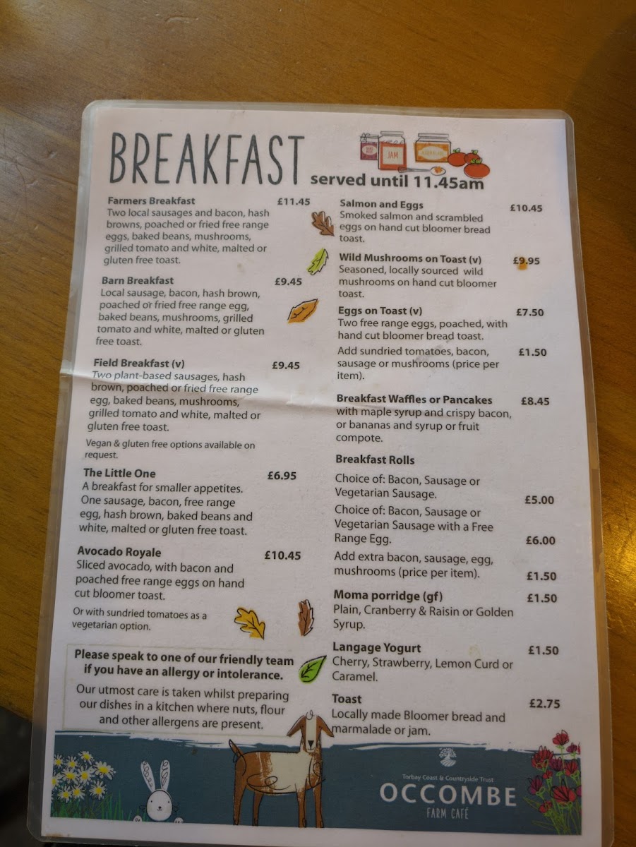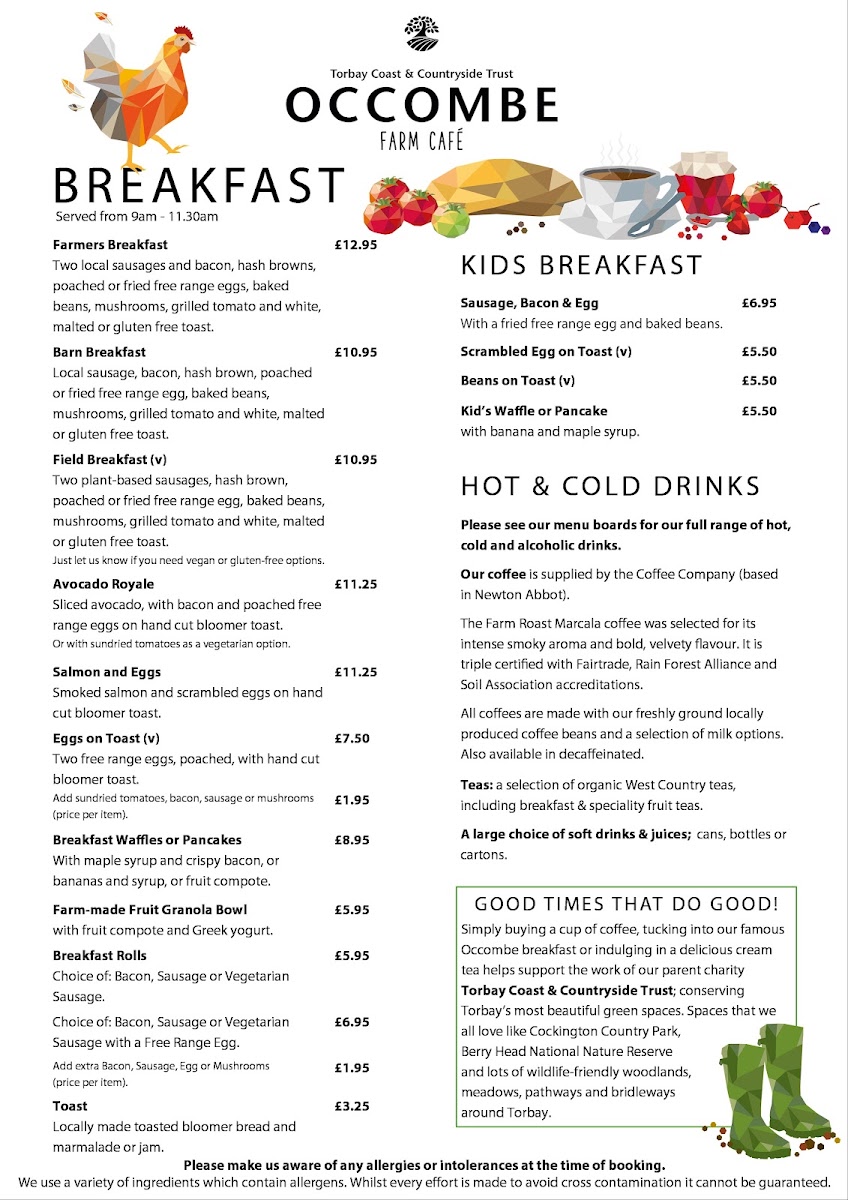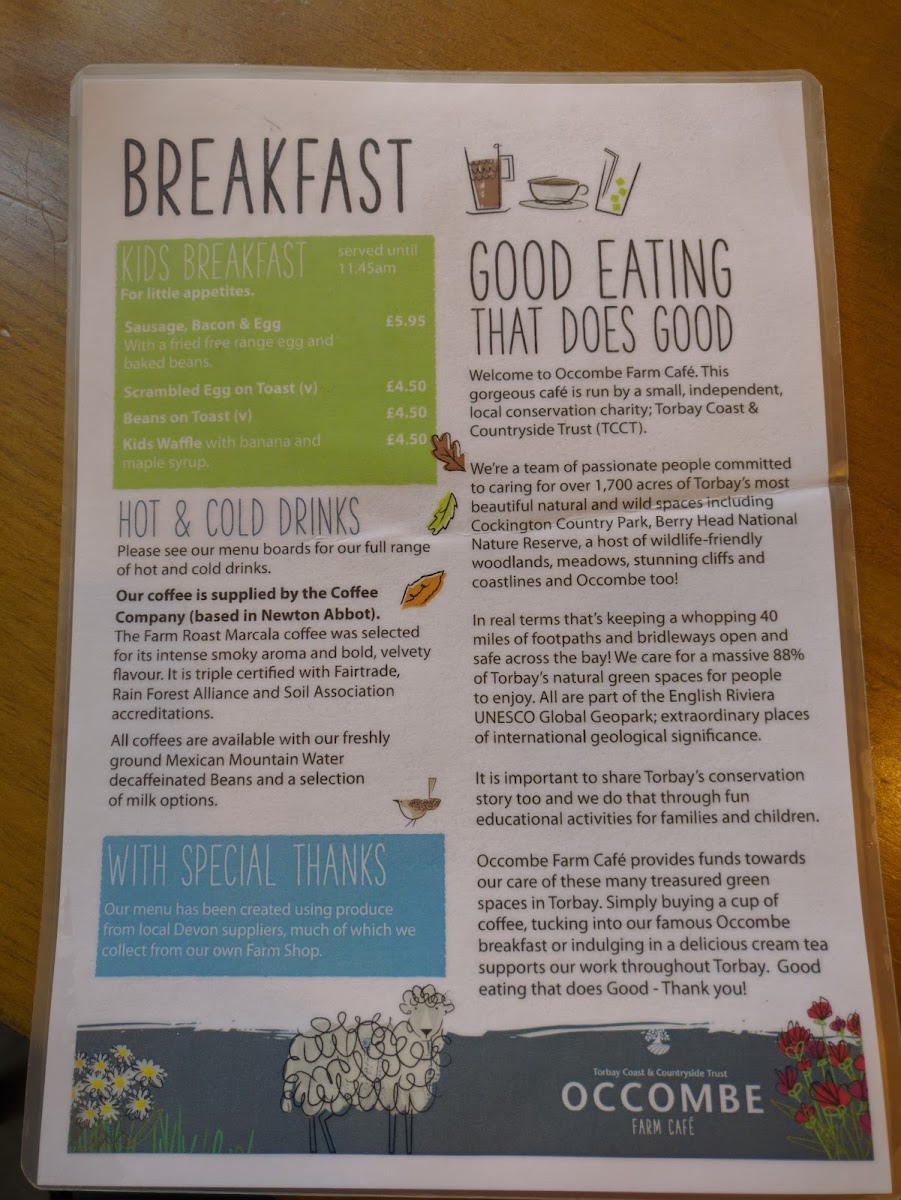 Welcome to Occombe Farm Cafe, an inviting eatery nestled within the beautiful Occombe Farm in Paignton, UK. This café offers a delightful mix of hearty meals and light bites, ensuring there's something for everyone. The salad menu features a range of pastries and frittatas paired with specialty salads, available for lunch from 12pm to 2.45pm. Families will appreciate the Kids Lunch Menu, designed for little tummies with meals like chicken nuggets and picnic boxes.